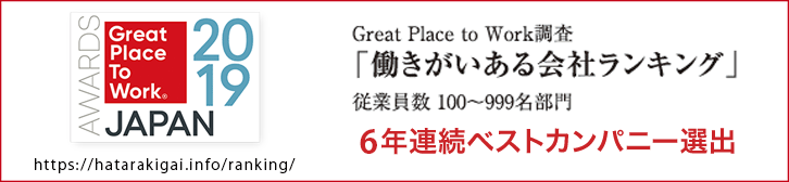 これら健全な組織づくりの評価として2015年、2016年、2018年度の「働きがいのある会社ランキング(従業員100~999名部門)」において2位という評価をいただきました。