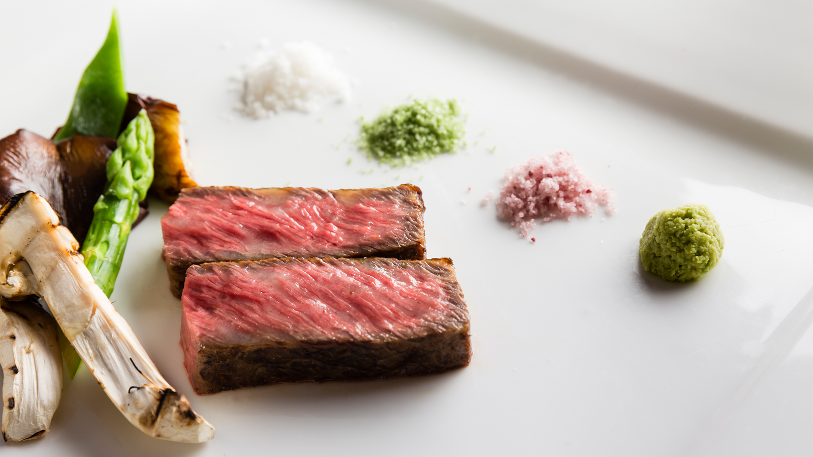 このお料理は、食材を卸していただいているパートナー企業様には多少無理なお願いをし、複数本持ってきていただいたフィレ肉の中から何本かを選ばせていただき、シェフの気に入った物だけを納品していただいています。その分、質のよいものを自信持ってお客様にご提供させていただいています。