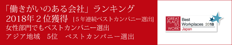 これらの健全な組織づくりの評価として、「働きがいのある会社ランキング」(従業員100~999名部門)において、9年連続「働きがいのある会社」に選定されました。