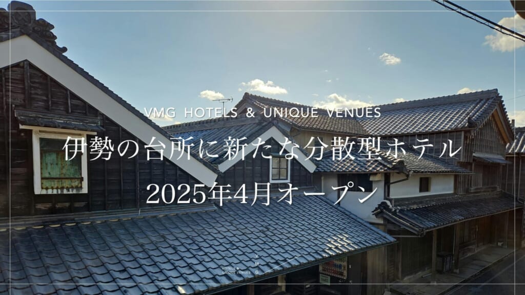 バリューマネジメント株式会社(本社:東京都千代田区、代表:他力野 淳、以下、当社)は、三重県伊勢市に、分散型ホテル「NIPPONIA HOTEL 伊勢河崎 商人町」を2025年4月に開業することをお知らせいたします。歴史的建造物を活用するブランド「VMG HOTELS & UNIQUE VENUES」として、伊勢神宮を擁する伊勢市への初めての開業であり、同時に伊勢市内における初めての分散型ホテル※になります。