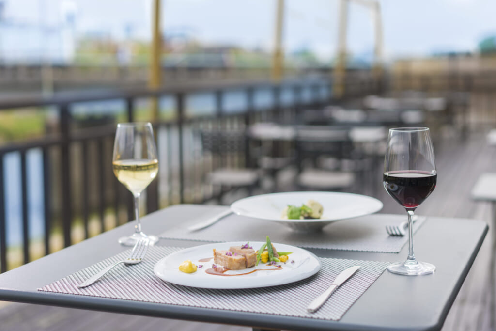 鮒鶴京都鴨川リゾートは、明治3年創業の料理旅館「鮒鶴」の歴史を受け継ぐ、築100年超の国登録有形文化財でレストランを運営しています。5月1日から10月15日までの夏季期間は鴨川の流れを間近に望む開放的なお席でお食事を楽しむ川床(かわゆか)と呼ばれるお席をレストランに併設します。鴨川沿いでも最大級の広さを誇る当館の川床は、年間約15,000人が訪れる京都屈指の夏の注目スポットとなっています。席間を十分にとり、京都の夏の風物詩である川床を、ゆったりとした空間でお過ごしいただけることも特徴です。