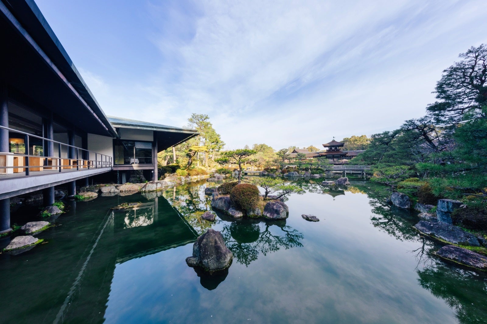 平安神宮は、明治28年の平安遷都1100年を期に、桓武天皇をご祭神として創建された神社です。印象的な朱塗りの建物と白砂をはじめとする伝統と格式に彩られた雅な風景は、見る人に日本の美を感じさせます。その境内にある平安神宮会館は、約1万坪を誇る国指定名勝「神苑」に隣接して建つ、優雅で気品のある建物です。四季折々の風情を感じる広大な日本庭園を借景に、京都の旬の食材を使ったコース料理を味わっていただける唯一無二の空間となっています。