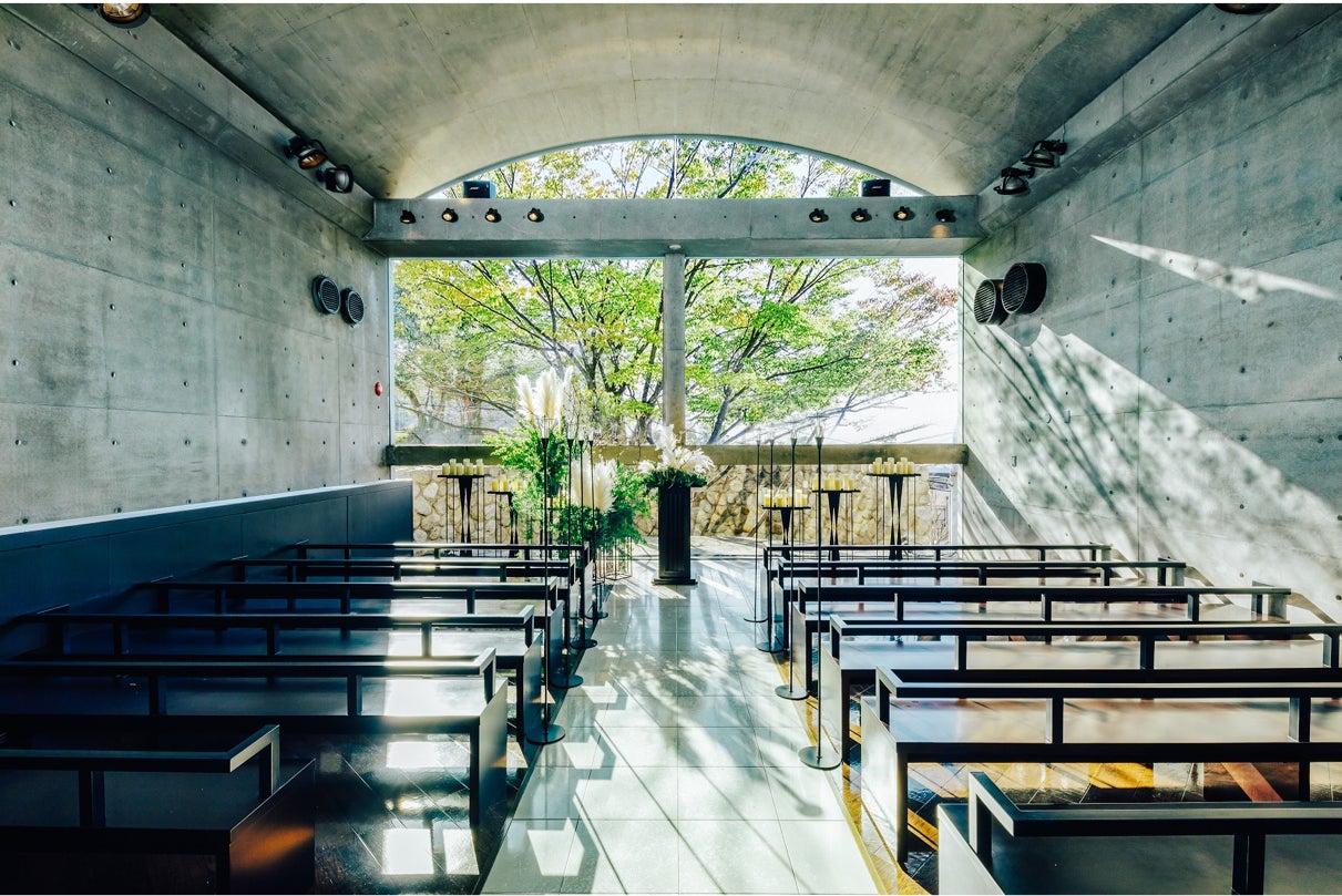 シンボルツリーの欅の木に調和するように佇む、ミニマル・アートな大人の隠れ家。1986年に安藤忠雄氏設計・建築で誕生したデザイナーズ空間です。コンクリートに緑と光を取り入れた唯一無二の存在感を放つチャペルや個性的なヴァージンブリッジなど一棟まるごと貸切で提供するウエディングスタイルが人気のほか、ワンフロアに広がるラウンジでは映画上映や生演奏も愉しめ、スタイリッシュなバンケットはパーティー会場としてもご利用頂けます。