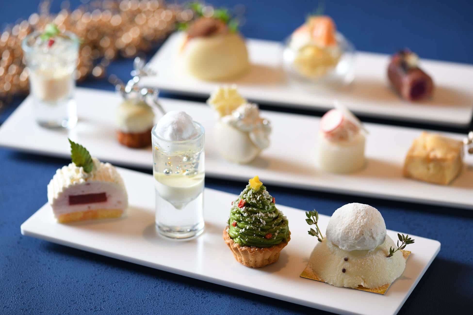 「サンタクロースヴィレッジ」というテーマの下、ホワイトをベースに一面の銀世界、雪化粧をしたもみの木、夜空に輝くオーロラ、街のいたるところに飾られるクリスマス飾りやスノーマンといったクリスマスらしいモチーフのスイーツやセイボリーを表現いたしました。