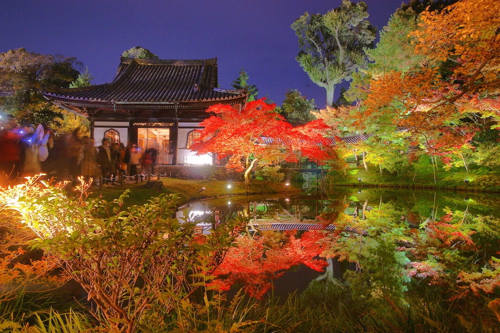 この時期だけのライトアップされた紅葉を、スムーズに心ゆくまで満喫できます。境内もライトアップされているので、東山を借景とした広大な庭園の水鏡に映り込む紅葉や、霊屋付近から見下ろす紅葉などさまざまな表情の紅葉に触れ、京都の秋の愉しみを存分にご堪能いただけます。