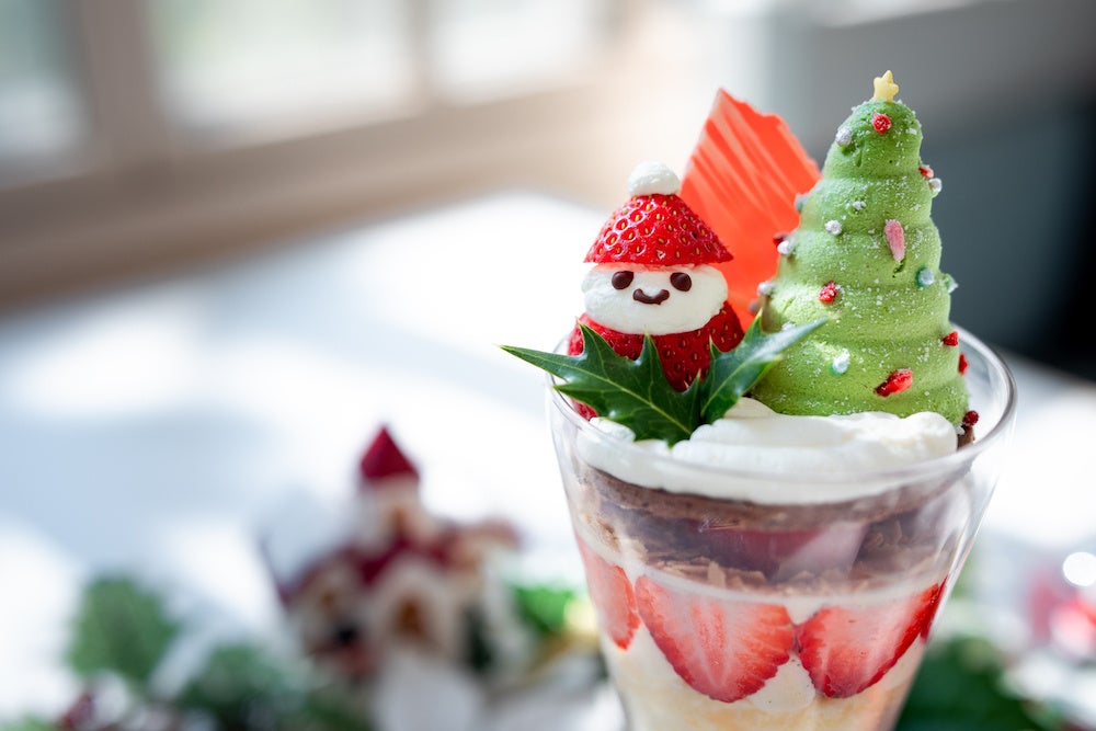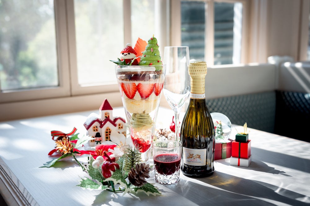 また、パフェはイチゴのサンタとピスタチオのクリスマスツリーが可愛く、店内でクリスマスらしいひとときを味わっていただけます。
