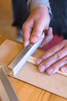 ご自身の手の大きさに合わせて木から箸を形取ります。