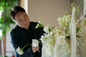 独創的な生け花デザインの「ANIE Floral & Deco.」とともに会場内の装花をコーディネートします。