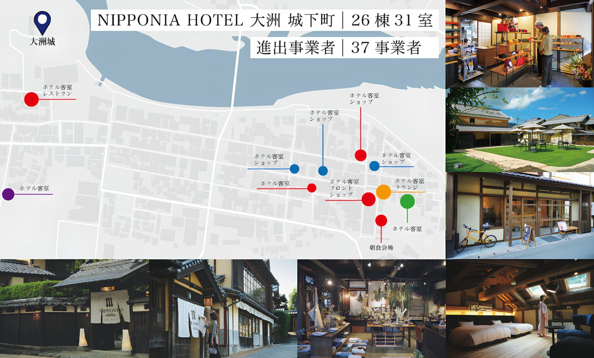 「日本初の城泊」「日本最大級の分散型ホテル」「Green Destinations 世界1位(Culture & Tradition部門)」に続く、世界に誇る成功モデルを創出します。 - 50の事業誘致・創出: