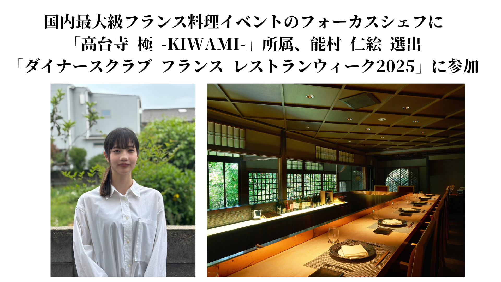 国内最大級フランス料理イベントのフォーカスシェフに 「高台寺 極 -KIWAMI-」所属、能村 仁絵 選出 「ダイナースクラブ フランス レストランウィーク2025」に参加