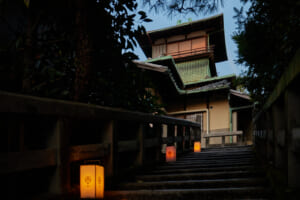 創業宝暦年間、250年以上続き京都の老舗企業オーナーの元邸宅を、その歴史とストーリー活かして修復・再生し、約700坪の敷地の中に、フレンチダイニング・シェフズカウンター・Café・アフタヌーンティーが楽しめるラウンジを備えたラグジュアリー空間です。アカガネリゾート京都東山1925の前身となるのが、大正14年(1925年)に建築された、京都の老舗銅加工メーカーのオーナーの邸宅だった建物。そのような背景から、屋根や雨樋など至るところに銅を贅沢にあしらい、緑青に変化したそれらが、歴史の深さを魅せてくれます。