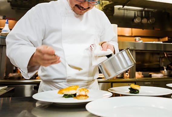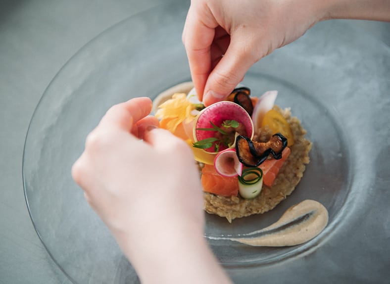 こだわり抜いた食材やメニューをさらに追求し磨き上げ、一皿の料理へと仕上げていく。