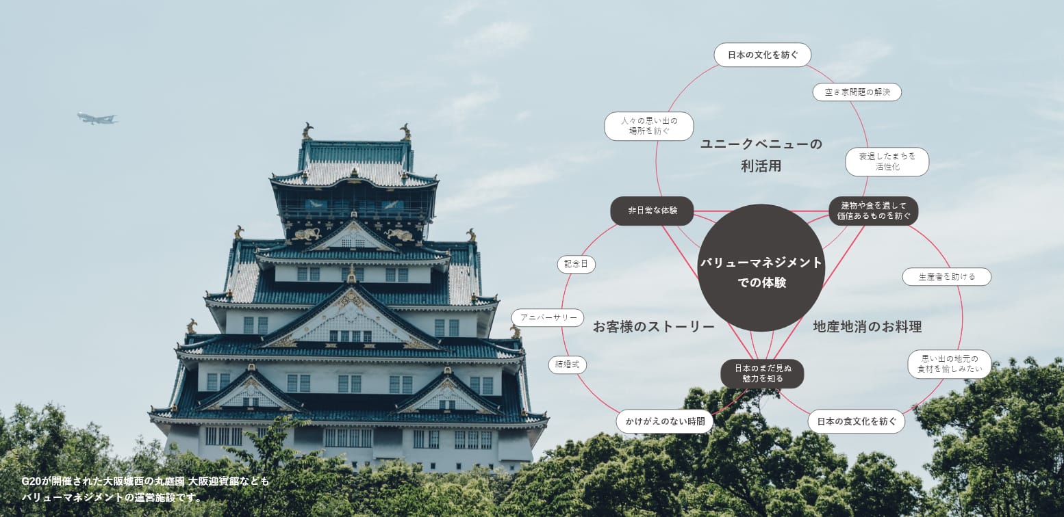 G20が開催された大阪城西の丸庭園 大阪迎賓館などもバリューマネジメントの運営施設です。
