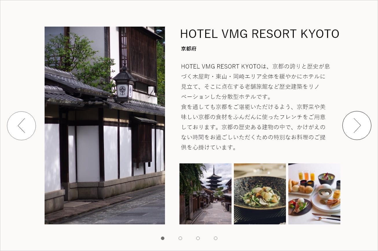 VMG HOTELS & UNIQUE VENUESは「まだ見ぬ時と出会う場所」をコンセプトにした、バリューマネジメントの施設ブランドです。宿泊、レストラン、婚礼、パーティ事業を展開し、お客様のニーズに合わせて一生に一度の記憶に残るかけがえのない“時”を創りあげています。
